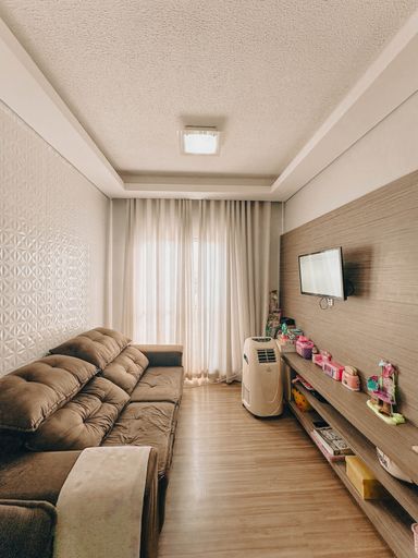 Apartamento contendo: -Sala; -Cozinha; -Área de serviço; -2 dormitórios; -Banheiro social; -1 vaga de garagem