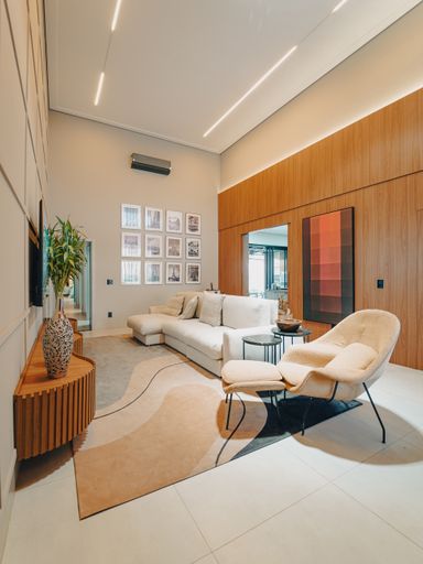 Sobrado contendo: 4 suítes, sendo 1 no piso térreo; Sala de estar e jantar; Cozinha integrada com espaço gourmet; Área de lazer com piscina; Academia; Escritório; Lavanderia; Garagem para 2 carros.
