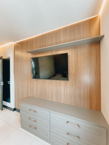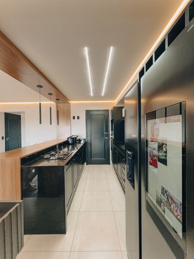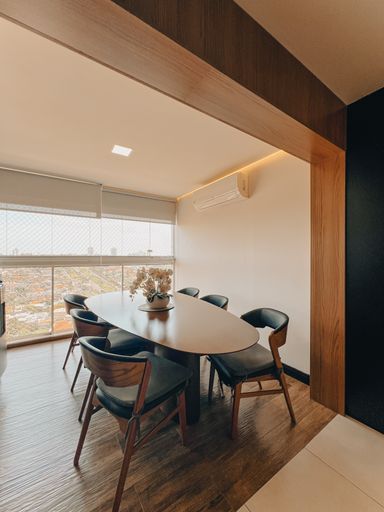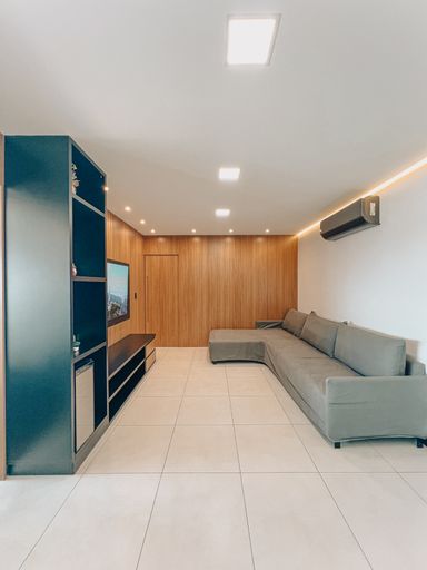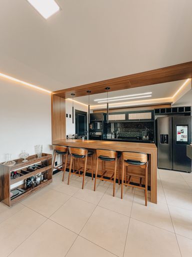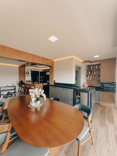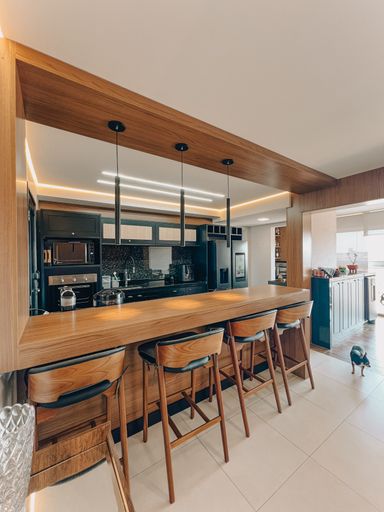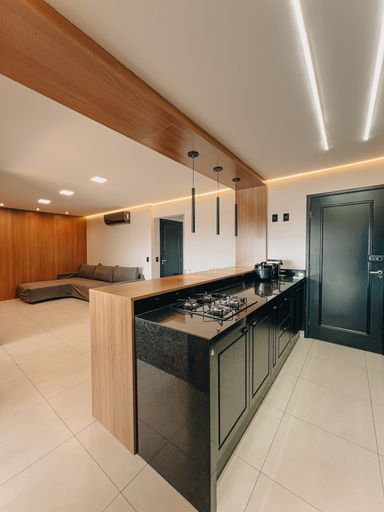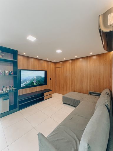 Sala de Tv e jantar integrada com cozinha