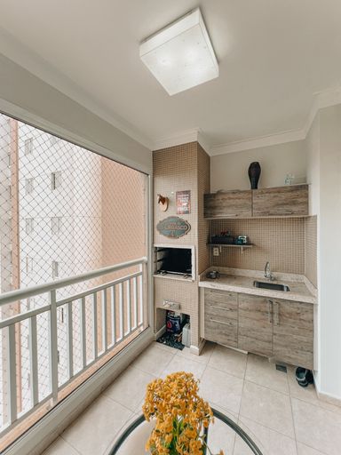 Varanda gourmet com churrasqueira a carvão