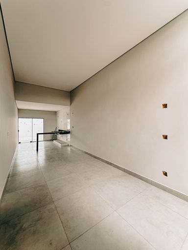 Sala e sala de jantar conjugados com pé direito duplo