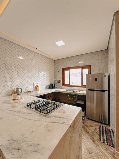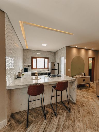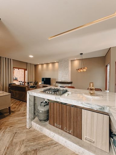 Casa contendo: 2 vagas de garagem Sala Cozinha Lavabo Lavanderia Banheiro social 2 dormitórios. Área externa com churrasqueira
