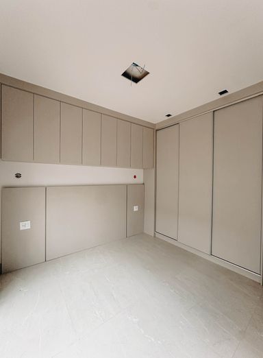 3 dormir sendo uma suíte com móveis planejados .