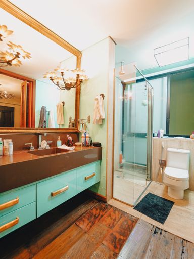 5 banheiros, incluindo banheiros sociais, lavabos e suítes