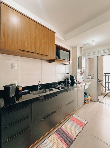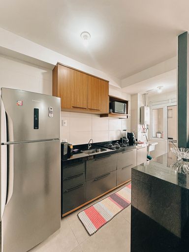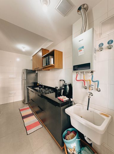 Mármores na cozinha, sala e banheiro.