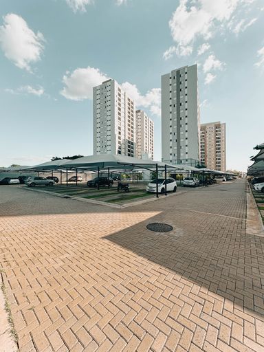 Garagem coberta.
